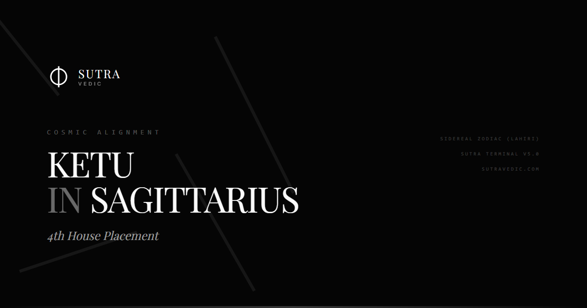 Ketu's placement in Sagittarius within the 4th House signifies a complex interplay of philosophical discontent, the quest for deeper truths, and a detachment from familial bonds, urging the native toward introspective growth amidst the paradox of belonging and liberation.