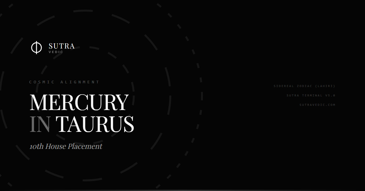 Mercury in Taurus in the 10th House fosters a steadfast intellectual framework, merging practical wisdom with ambition. This placement cultivates resolute communication skills and a propensity for stability in career endeavors, yet may hinder adaptability and flexibility.