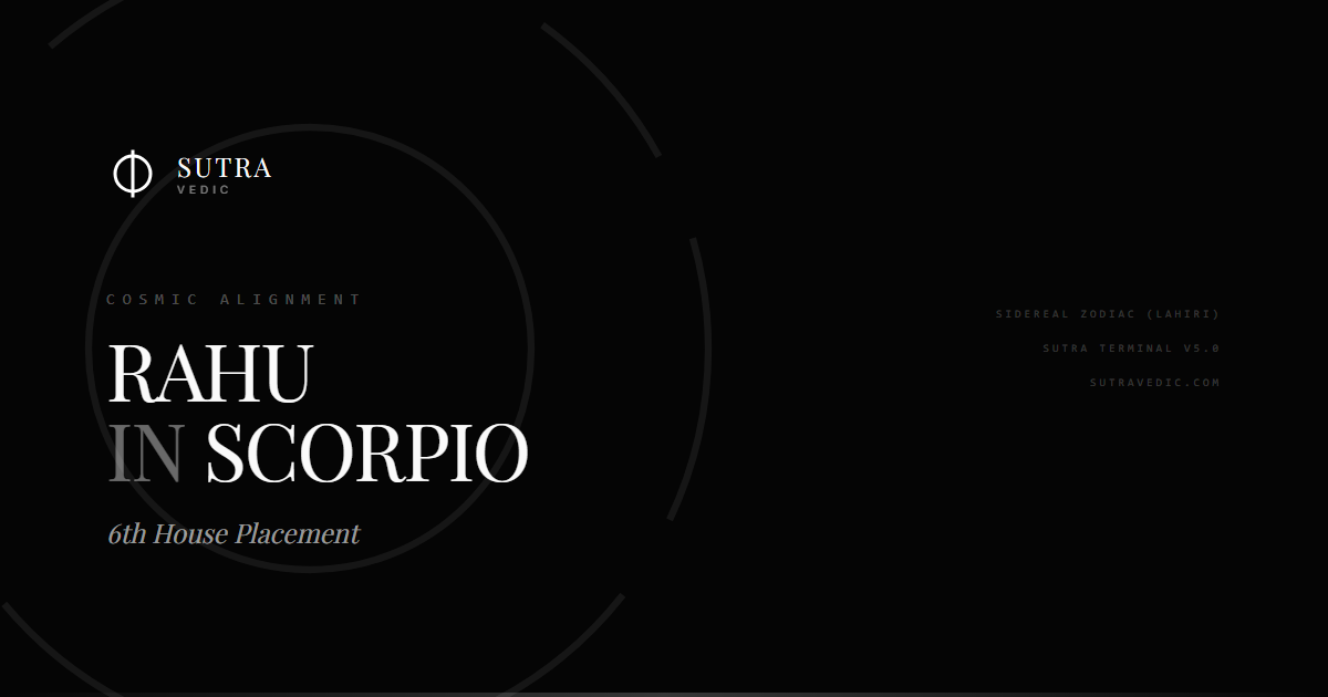 Rahu's placement in Scorpio within the 6th House unveils a complex interplay of deep psychological transformation, health struggles, and karmic resolutions, invoking shadows that challenge the native's ability to navigate life's undercurrents.